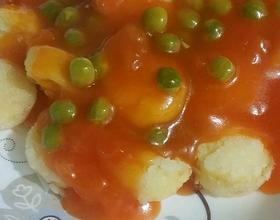 准备食材:日本豆腐,番茄,青豆