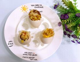 鸡蛋里面放一点点水,糯米更容易熟,也可以用锡纸包起来