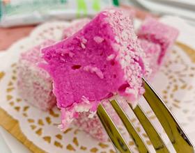 食材:牛奶330g、淀粉50g、糖30g、火龙果汁10g、米粉适量