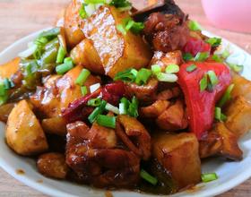 - 1. 主要材料处理,土豆和鸡肉切成一样的小块。姜蒜切片,葱切沫。青辣椒和红辣椒切成1平方厘米的小块。
