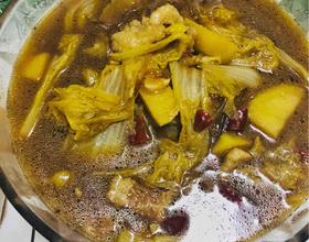 - 5. 然后倒入土豆,粉条。加入酱油,料酒,五香粉,胡椒粉等。再加入水直至可以没过所有食材,再加入适量盐。