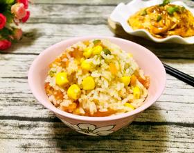 甜玉米豌豆胡萝卜丁翻炒一下也可以,我直接放入锅内了。