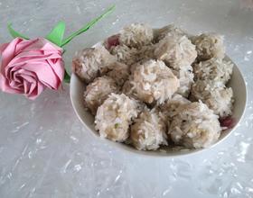 - 8. 把肉馅搓成丸子裹上糯米,放入蒸笼,大火蒸30到40分钟左右。