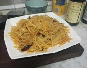 倒入土豆丝 加入盐 白糖 味精 白酱油 耗油炒断生