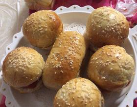- 10. 二次发酵完成后取出,刷上鸡蛋和撒上白芝麻。烤箱170度预热后放入,烤15分钟即可。