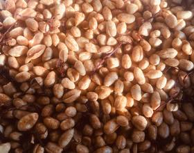 把水烧开,倒入准备好的花生中,加盖焖。《一定是开水泡》,泡花生的时间以可以轻松剥掉花生表皮即可,大概8分钟就差不多。