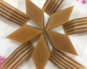 - 8. 剩一碗备好,水开后开蒸,第一层先红糖桨,每蒸一层添加一碗,两种颜色交替着蒸