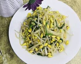 热锅起油,先倒入豆芽菜,翻炒均匀