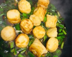 放入辅料炒熟,放入豆腐,勾芡出锅