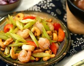 - 9. 加入炒好的虾仁和熟腰果,加入适量生抽,炒匀即可。