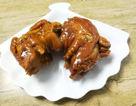 前蹄两个脚趾基本一边长,后蹄脚趾一长一短,看切面前蹄筋多肉多,猪蹄腿肘部分有小孔,后蹄是没有的,大家可以仔细看一下我菜谱第一张图片是能看出上面有小孔的。掌握这几步基本就不会买错了。