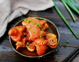 猪蹄冷水入锅焯水,水里加入料酒,水开后煮两三分钟捞出猪蹄。