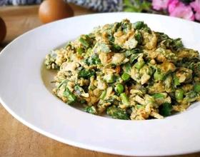 切碎的香椿和鸡蛋拌匀,放入盐调味