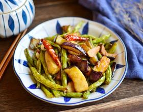 茄子切条,加盐拌匀,腌制15分钟,攥干水分备用