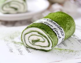 如果烙制的饼皮直径比较大,两、三张饼皮就可以卷一个抹茶毛巾卷,太多层反而不好。煎饼皮时全程用小火,尽量薄一些。做好的抹茶毛巾卷放进冰箱冷冻定型后再切,这样切面会比较漂亮,毕竟我们都是“外貌协会的”是吧!