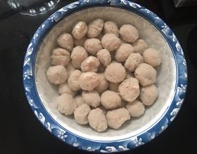 捏成丸子下锅煮熟后捞出用凉水浸泡