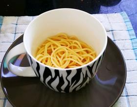 意面用剪刀✂️切段,搁入玻璃碗里,放水2/3碗。