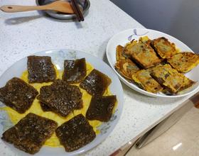 加面粉是今年的突发奇想,以往都是只有鸡蛋。值得说一句:打蛋的时候要加点盐,和自带甜味的年糕综合一下口感。