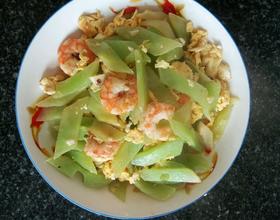 莴笋去皮切片用开水烫一下(烫的时候加入少许油和盐),虾仁是没吃完的正好剥成虾仁炒着吃