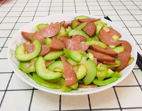 放入角瓜和火腿肠翻炒