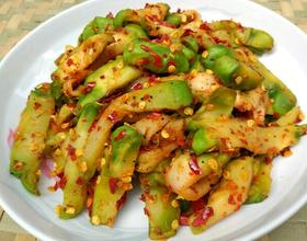 榨菜干在滚烫的开水里过一下放凉水里泡20分钟左右捞出控干水分,加辣椒碎、盐、鸡精、香油调拌均匀食用