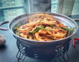 倒入炸好的藕片加蚝油和四川麻辣火锅底料半汤匙