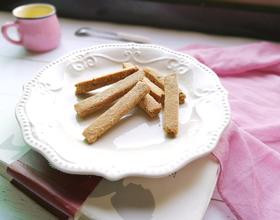 - 8. 切成条状,烤箱中层160度烤5分钟。也可直接省略烤箱这一步。储存时面上再撒些熟豆粉。