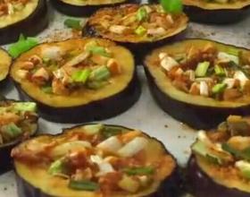 烤盘铺上锡纸,茄子切片在食用油里滚一下放烤盘上
