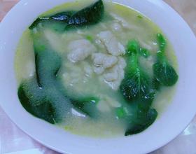 疙瘩快熟了放入青菜,再进行调味,加鸡精,最后出锅倒入一点点香油