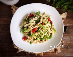 青椒洗净去籽去蒂,切成丝,小米椒切段备用