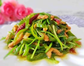 - 2. 猪里脊肉切丝,放碗里,加料酒,盐,淀粉抓匀腌制十分钟。