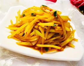 放入榨菜丝,加入盐,糖,鸡精,生抽