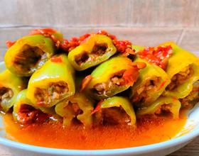 - 11. 放入弄好的线椒灌肉,大火收汁即可。