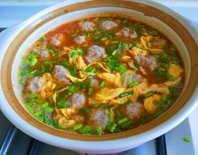 - 13. 把丸子舀上一大勺放入米碗中,好吃又嫩滑。