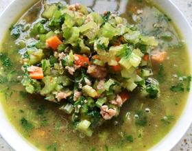 起锅开油后加葱花爆香,倒入肉末翻炒均匀后 加入味极鲜和适量盐 倒入切好的芹菜末 倒入适量水,开锅即可
