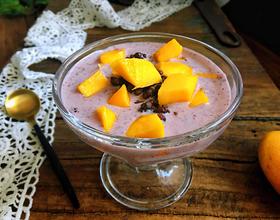 放上芒果肉,一道香糯、酸甜、紫米筋道的甜品就做好了!