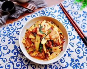 - 7. 放入五花肉煸炒至肉微卷,表面微微发黄。