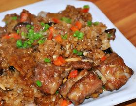 - 6. 将切好的香菇,沥干水分的糯米和腌制好的排骨混合均匀
