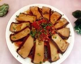 腌制十分钟后,将鸡蛋干,以A字形并列摆放周围,如图