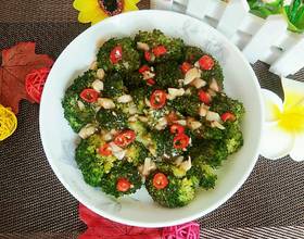 将烧好的调料汁浇在蒸好的西兰花上完成。