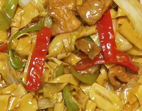 出锅前水淀粉勾芡,好了,坐下吃饭吧!