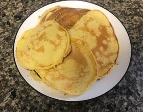 锅中不放油,倒入面糊,小火煎,煎制定型翻面,两面金黄出锅即可