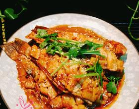 - 3. 把煎好的扒皮鱼盛入盘中。