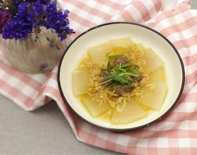 虾皮取出放上冬瓜面上,撒上适量盐。