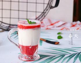 喜欢的杯子,一层草莓酱,一层牛奶。薄荷装饰一下。
