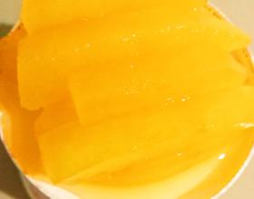 把焯水的冬瓜放冷水里漂冷,捞起放入准备好的橙汁里。