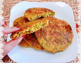 两面焦黄的荠菜杂粮饼出锅了。野草的清香味清爽极了,口感不错,配上粗粮健康极了!