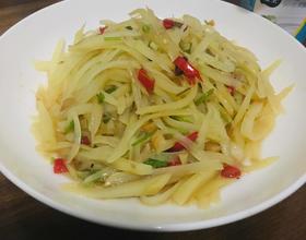 最后倒入土豆丝上 发少许生抽 盐 均匀搅拌即可