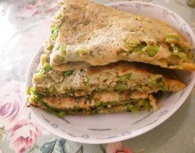 把调制好的面糊到入锅内,尽量均匀摊平(不要放太多,不然饼会很厚)