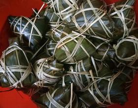 像这样包好,包好的时候就用大锅把水给烧开了,然后放粽子熬,熬的时候得记得翻动,雨露均沾,不然会出现一些生一些熟的尴尬结果。